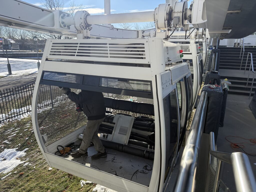Remplacer une vitre sur une cabine de La Grande Roue n’a absolument rien à voir avec un remplacement pare-brise traditionnel.